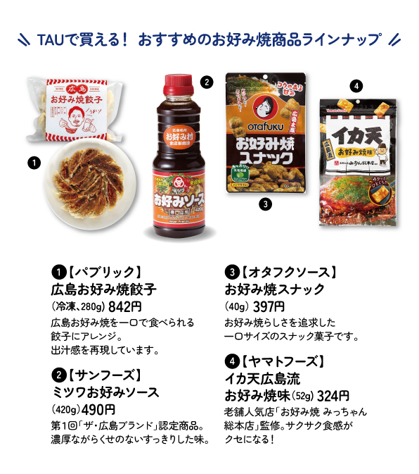 食欲をそそるソースの香りと、生地、キャベツ、肉、麺、そして卵の層が織りなすハーモニーをご賞味ください!!その他にも「お好みソース」や「お好み焼手作りセット」も♪